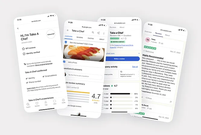 The moment you arrive at our site you will encounter a big “begin” button. This will be the beginning of your journey towards personalizing your Private Chef experience! We will ask for specific characteristics of your event such as: location, date, cuisine preferences, etc... and once you have provided this info, chefs from your city will send you menus that fit what you are looking for. Nothing is set in stone! You can change details with your chef all throughout. Once you reserve your prefered chef, all there is left to do is wait and enjoy.